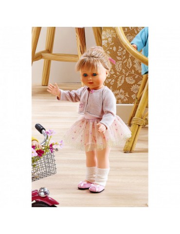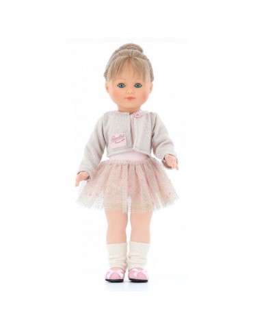 Poupée Marie-Françoise 40 cm avec habillage "Gracieuse". Corps et membres en polyéthylène finition satinée. Tête en vinyle souple au délicat parfum de vanille. Yeux dormeurs bleus avec cils. Cheveux longs blonds. La tenue se compose d'un tutu, d'un body, d'un gilet, de guêtres et de chaussons de danse. En édition numérotées. Photos non-contractuelles