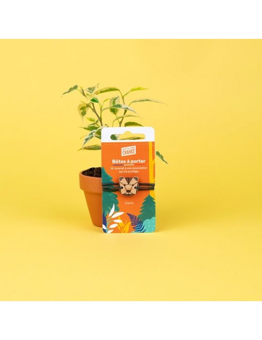 1 bracelet Ours acheté = 1€ est reversé à l’association Agir pour le Vivant et les Espèces Sauvages (AVES).