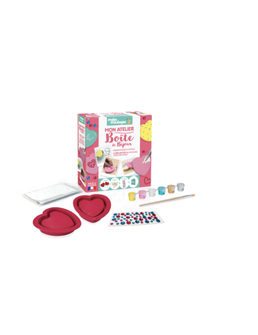 Grâce au Mako moulages "Mon atelier… Boite à bijoux", l'enfant peut concevoir lui-même ses boîtes à bijoux; puis les peindre. Parfait comme cadeau pour la fête des mères ou des Grands-mères. Offrir à sa meilleur amis ou tout simplement se faire plaisir !