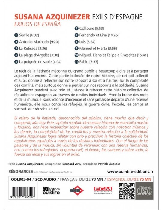 Récit Susana Azquinezer I musique Patrick Licasale I illustration Ghislaine Herbéra I collection Résonances I format Livre audio 2CD, 140 x 190 mm I durée 148 mn I Bilingue Français / Espagnol