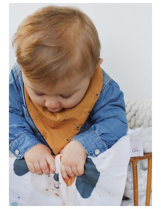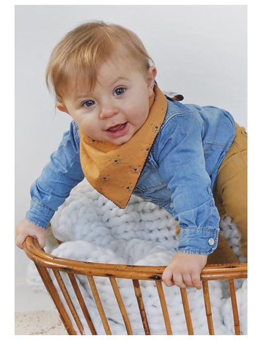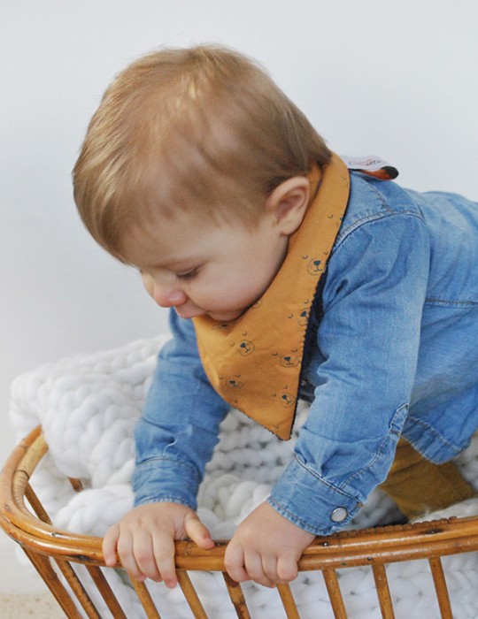 Un adorable mini bavoir bandana Chiens de couleur caramel qui séduit par sa praticité. Il est idéal pour protéger votre bout de chou des petites bavouilles lors de sa poussée dentaire. Doux et hypoallergénique, il préservera son cou, sa nuque et également ses vêtements.