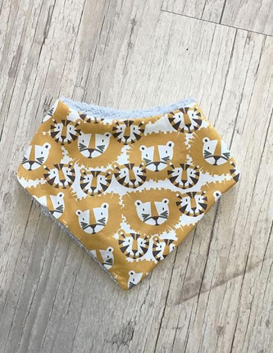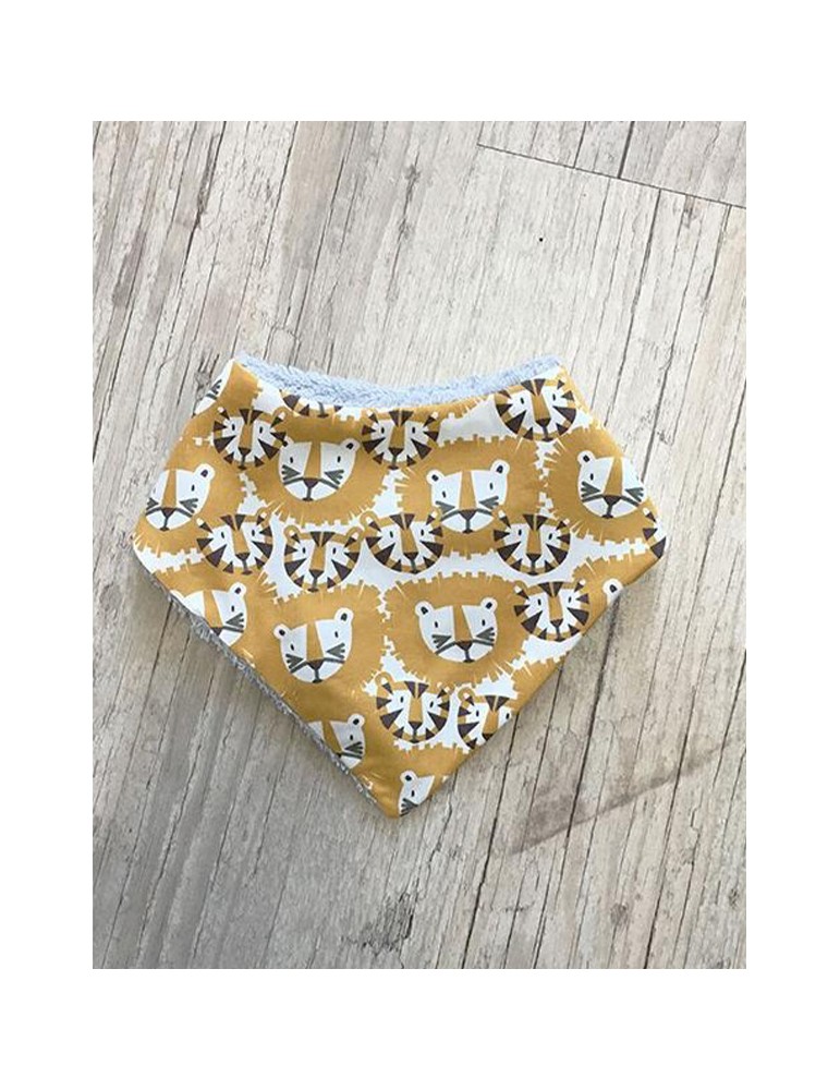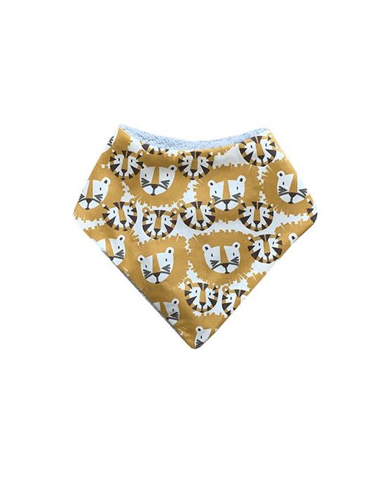 Adorable mini bavoir bandana orné de motifs tigres et lions. Il est idéal pour protéger votre bout de chou des petites bavouilles lors de sa poussée dentaire. Doux et hypoallergénique, il préservera son cou, sa nuque et également ses vêtements.