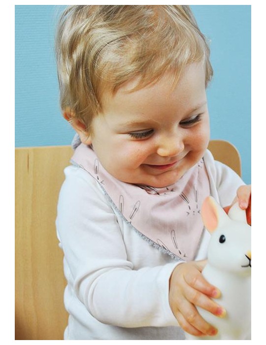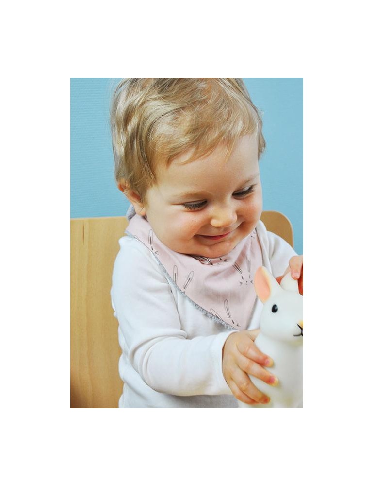 Un adorable mini bavoir bandana aux motifs lapin de couleur rose. Il est idéal pour protéger votre bébé des petites bavouilles lors de sa poussée dentaire. Doux et hypoallergénique , il préservera son cou, sa nuque et également ses vêtements.