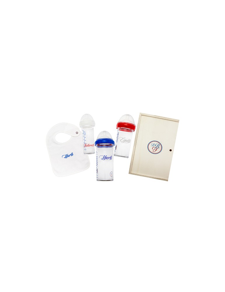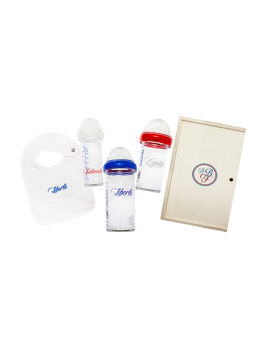 - 1 biberon "Liberté" de 360 ml, 1 biberon "Egalité" de 210 ml et 1 biberon "Fraternité" de 210 ml.