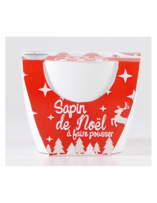 Petit pot blanc en céramique pour faire pousser un joli petit sapin de Noël à offrir pendant les fêtes ou pour décorer.