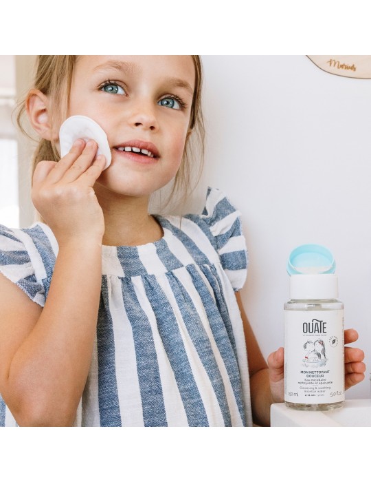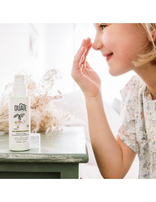 Ce coffret contient des produits doux et naturels, indispensables au rituel de beauté, pour garder une peau douce et fraîche au quotidien. Ils respectent la peau sensible de l'enfant. Mon Nettoyant Douceur purifie l'épiderme en profondeur. Le gel en eau Crème d'amour pour sa part hydrate et protège la peau de toute pollution.