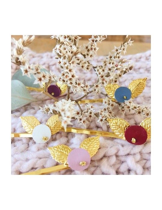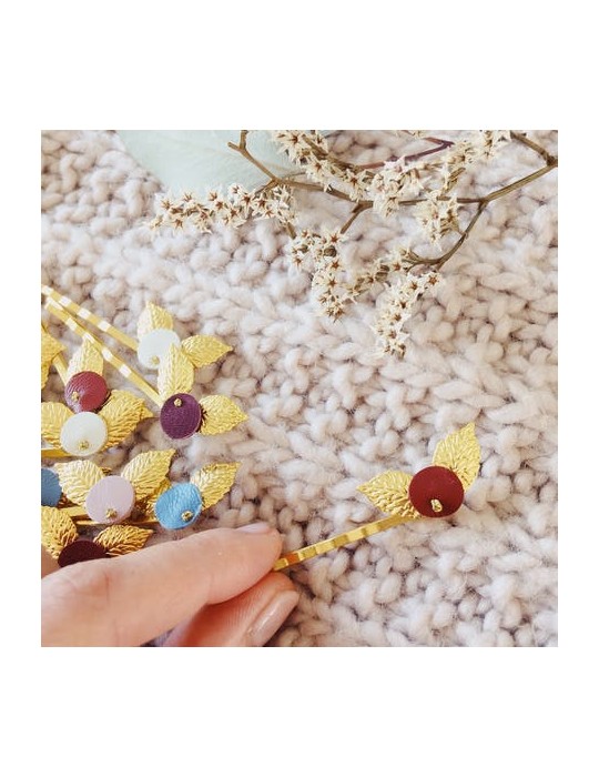Cette barrette se présente sous forme d’une délicieuse baie rose, ivoire, bordeaux, bleu ou prune au coeur d'un précieux feuillage couleur or. Naturelle et romantique, elle ornera avec élégance les chevelures laissées naturelles comme les coiffures de cérémonie les plus raffinées. Avec ces couleurs élégantes faciles à assortir, elle sera parfaite pour les tenues d’automne - hiver et les fêtes de fin d'année. Elle apportera un souffle bucolique féérique et une touche bohème chic au quotidien.