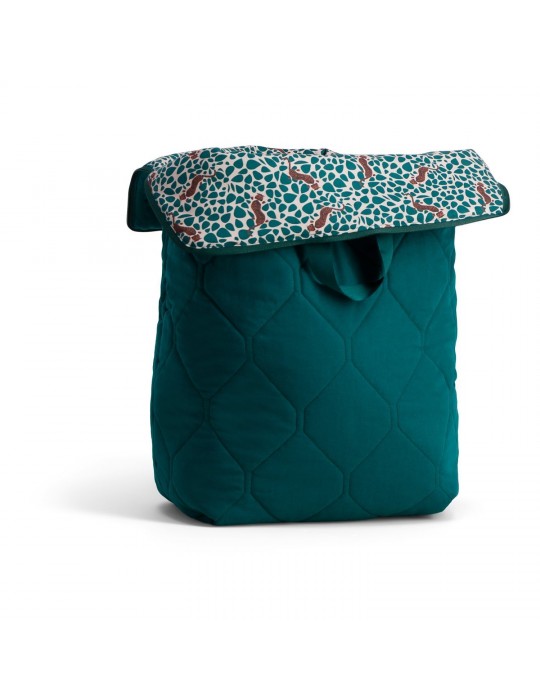 Cette grande panière à jouets nomade se transforme en sac en un 'zip' ! La panière à jouets Mika en coton matelassé doublé d'un imprimé tigre et savane sera aussi un élément de déco pour la chambre de votre enfant. Fini les bacs de rangement en plastique, ce bac à jouets en tissu rigide et stylé se transforme en grand sac pour transporter tout ce dont bébé a besoin pour s'amuser et s'émerveiller. Dès la naissance, vous pourrez y ranger doudou, peluche, boite à musique, hochets, jouets… Nos tissus certifiés Oeko-tex respectent les Normes CE, cette panière a une double utilité et est pratique pour les parents et les enfants. Fabriqué en France dans des ateliers parisiens, ce panier-sac est un MUST HAVE dans la chambre de bébé. En achetant ce produit vous soutenez la production française.