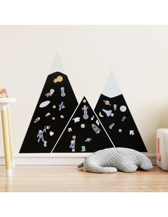 Envie de faire apparaître une montagne dans une chambre d'enfant ou une salle de jeu ! Le tableau magnétique montagne est une nouvelle source d'inspiration, une invitation à l'évasion ! Des Puzzles, des coloriages, des photos... vous pouvez tout aimanter dessus ! Le plus, l'enfant pourra également écrire ou dessiner dessus avec feutre craie liquide.