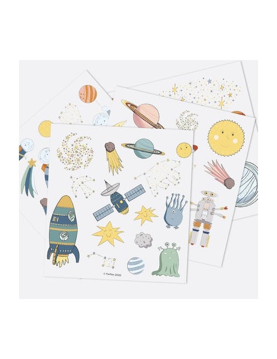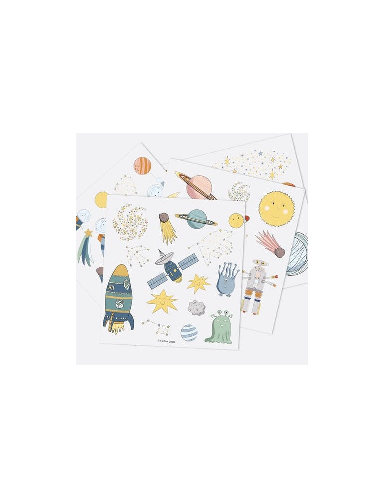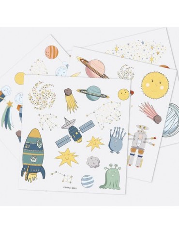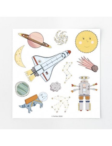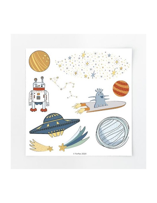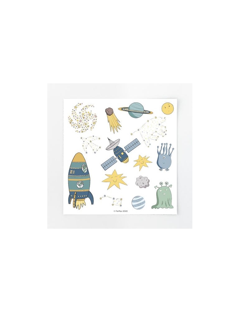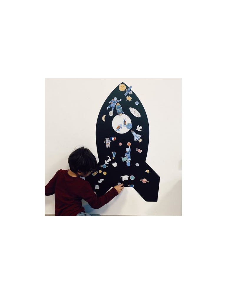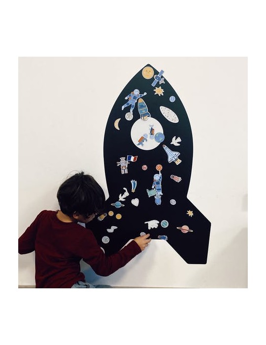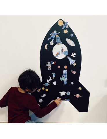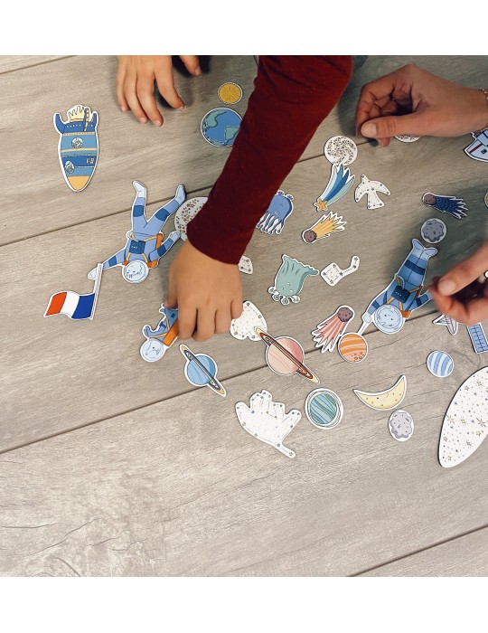 Un jeu divertissant composé de 49 magnets pour partir à la conquête de l'espace, avec lequel les enfants vont pouvoir reproduire des scènes ou inventer des histoires.