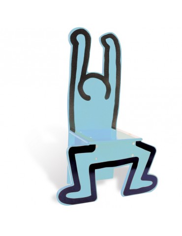 Une chaise pour enfant reprenant un dessin iconique de l'artiste designer Keith Haring, fabriqué en France dans le Jura.