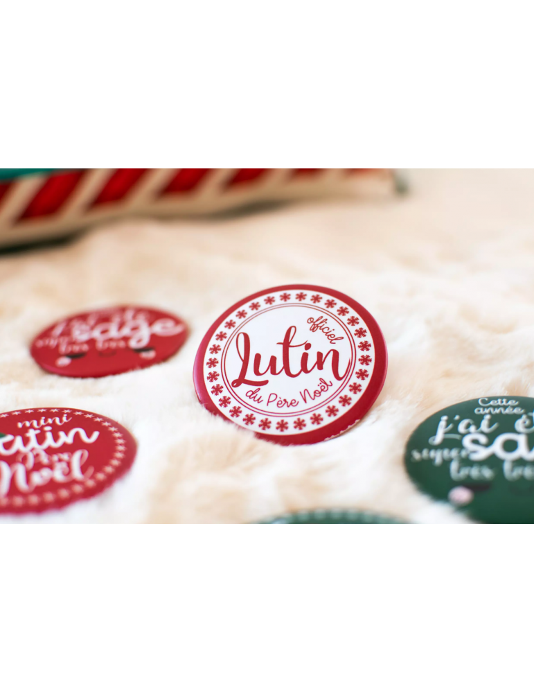 Mini badge "Lutin du père noël" - Rouge et blanc
