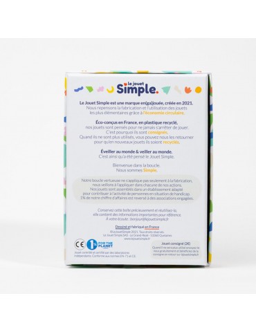 Une consigne de 2€ est directement intégrée au produit afin qu'il puisse être renvoyé gratuitement à la marque quand l'enfant ne jouera plus avec. Toutes les infos sur : www.lejouetsimple.fr