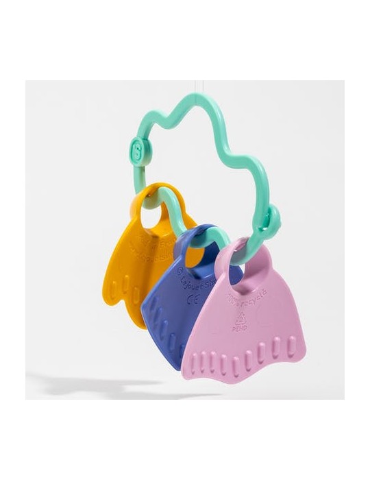 Inspiré directement des formes Simple, le hochet en forme de nuage est composé de 3 palmes de différentes formes, couleurs et textures. Elles s’emboîtent les unes avec les autres afin de développer le sens de l’observation et du jeu des enfants.