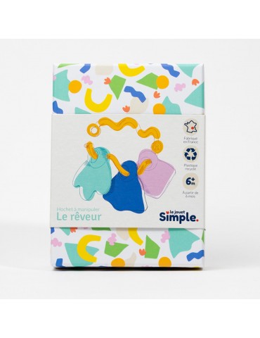Le hochet à manipuler est un jouet à offrir qui est présenté dans une jolie boîte coffret à garder et à réutiliser. Recouverte d’un fourreau en carton recyclé pour présenter le produit, il suffit de le retirer pour l’offrir sans avoir besoin de papier cadeau.