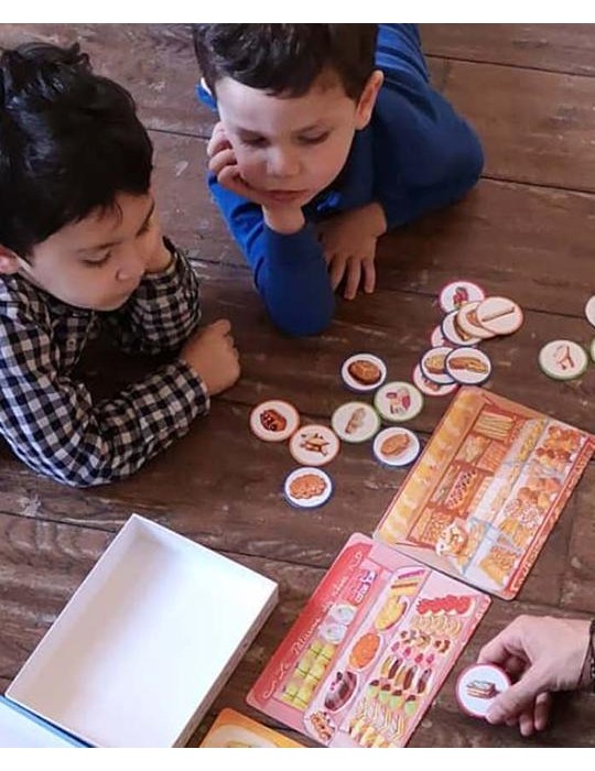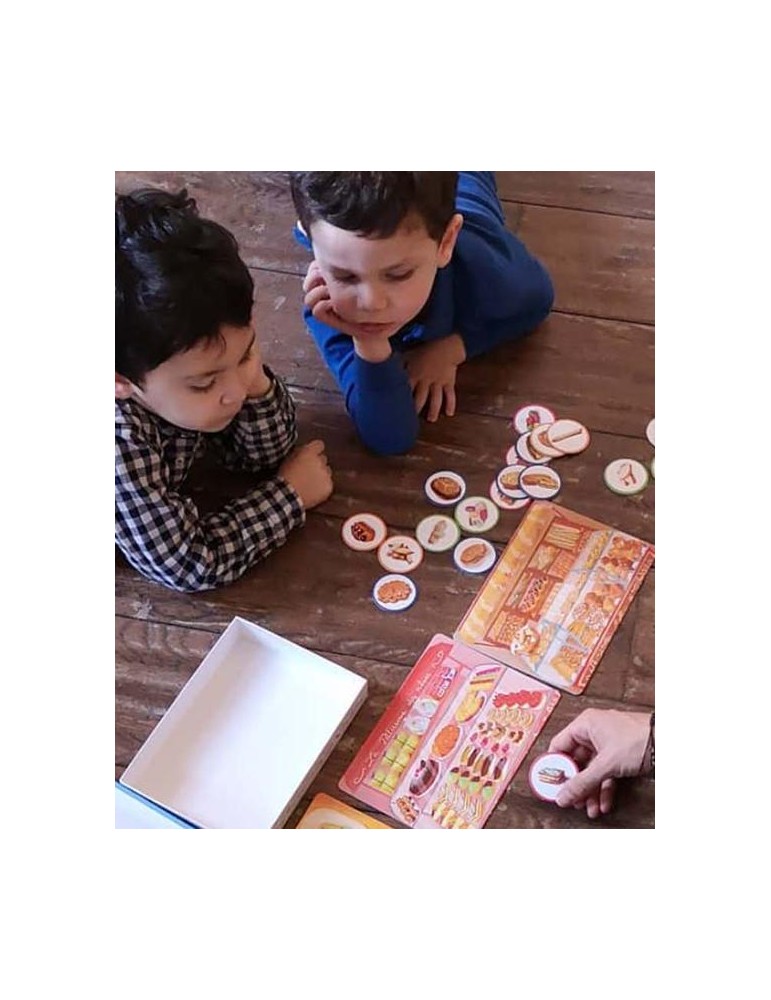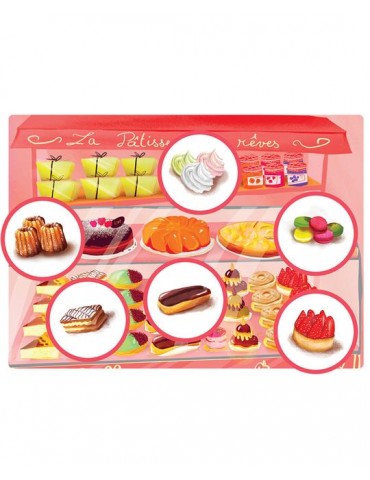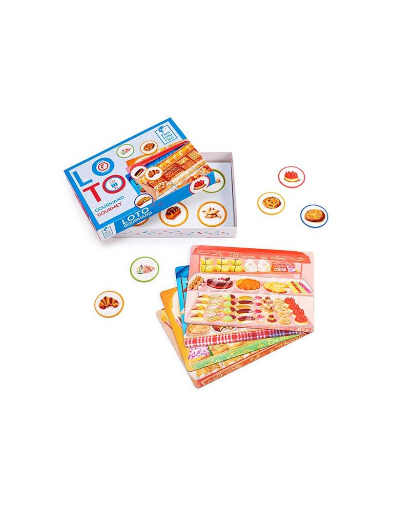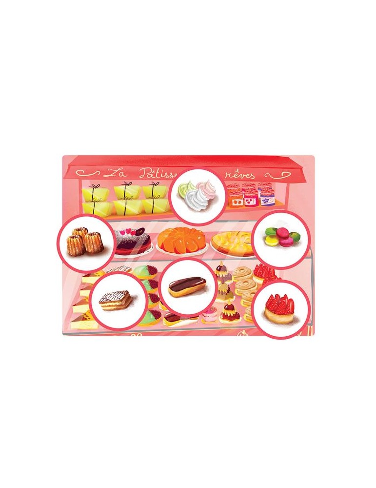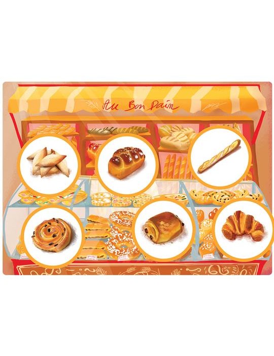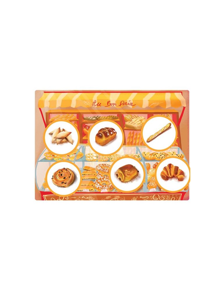 Pour faire découvrir les gourmandises françaises. Le jeu a 4 planches : une sur les confiseries typiquement françaises (calissons, berlingots…), une sur la pâtisserie, une autre sur les gâteaux régionaux et évidemment une planche dédiée à la boulangerie