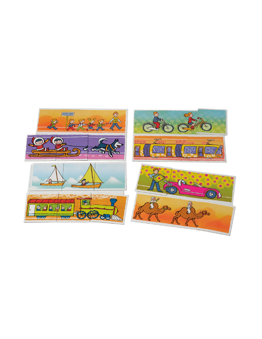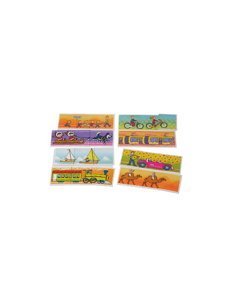 Chaque joueur choisit une planche, qu'il met devant lui, face visible. Les cartes sont posées sur la table, faces cachées. A tour de rôle, chacun découvre une carte. S'il a la même partie d'image sur sa planche, il pose la carte dessus et rejoue. Sinon il donne la carte à celui qui en a besoin. Il faut avoir 3 cartes (avant, milieu, arrière) pour pouvoir reformer une image. Le premier joueur qui a rempli sa planche gagne la partie.