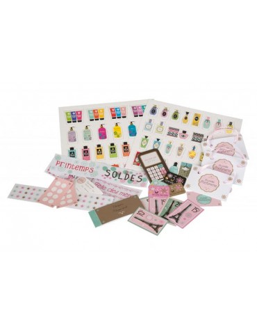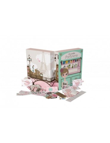 Comme une boutique de parfum! Coup de coeur des petites filles, la magie opère dès l'ouverture du coffret, avec sa vitrine, ses étagères, ses tiroirs ornés d'un ruban délicat. A l'intérieur, plus de 150 produits de beauté illustrés ou à colorier, puis à installer dans les fentes des étagères amovibles. Etiquettes de prix, carte bancaires, billets, chéquier, sacs, stickers,... Rien ne manque pour jouer à la marchande.