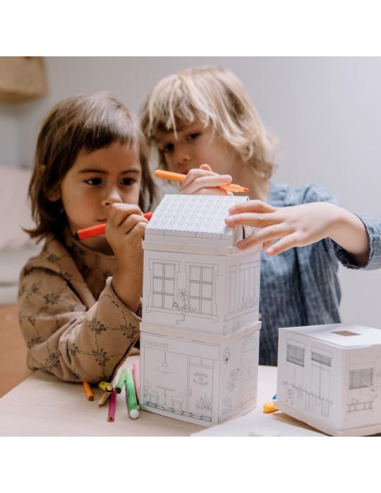 Fabulabox est un système de construction inédit qui permet de créer des villes et de transporter les enfants dans un monde imaginaire rempli de surprises. Toute la gamme est compatible pour pouvoir agrandir sa ville avec des univers différents.