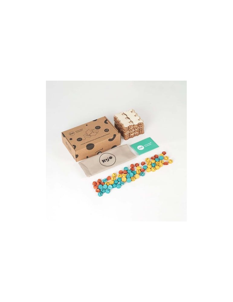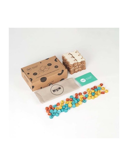 Découvrez le kit Jeu libre expert en bois PEFC de Kojo. Des plaques, des pinces, bref…l’essentiel !