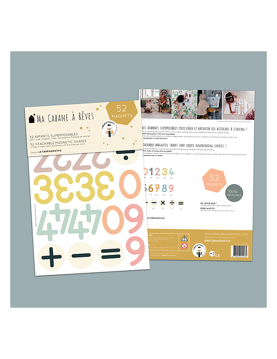 La Fabrikamaths, composée de 52 magnets, est idéale pour apprendre à compter :) Une couleur par chiffre! Cela permet à l'enfant d'identifier le chiffre à l'intérieur d'un plus grand nombre. Quant-au signe de la division, même si votre enfant ne l'utilise pas encore, il était important de l'ajouter afin qu'il se familiarise avec ! Il le retrouvera sur les calculatrices , les caisses de marchandes,... Et puis, le grand frère ou la grande soeur pourra aussi s'amuser à faire quelques divisions!