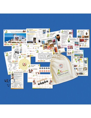 Un jeu de société à fabriquer originaire du pays ou en lien avec le pays, son histoire, sa règle et le matériel nécessaire. - Un livret découverte - un livret sur une chanson ou une légende - un livret gastronomie avec recette emblématique - un livret artiste avec matériel inclus - 5 jeux de mots, de points liés et d'observation - 3 coloriages pour tous ( 2 enfants/ 1 adulte) - un pochon de rangement en coton - un livret décrivant le concept pour que les adultes puissent accompagner l'enfant dans la découverte du pays
