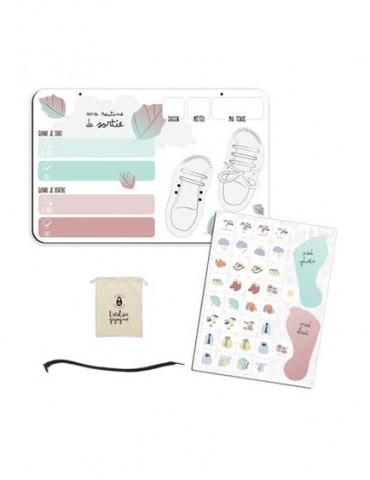 Jusqu’à l’âge de 4 ans, un enfant réussit à se situer grâce à des repères très concrets. Les routines permettent aux enfants de mieux se repérer dans leur journée et d’acquérir de l’autonomie tout en étant guidés. Les magnets vous permettent de créer les routines qui vous ressemblent. Pour chaque routine, votre enfant dispose de deux rangées, l’une pour les actions à réaliser et l’autre pour celles effectuées. La partie « chaussures » permet à votre enfant d’apprendre à distinguer « la droite » / « la gauche ». Elle lui permet aussi d’apprendre à lacer ses chaussures.