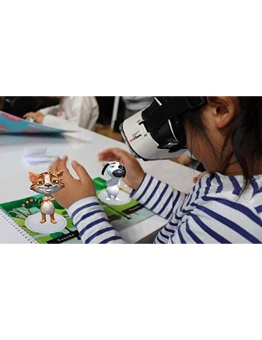 Contenu de la boîte: un casque VR, un livre et un chevalet (le produit est utilisable avec smartphone & tablette). Compatible Ios et Android.