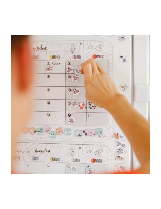 Ces jolis magnets permettent de répartir les tâches ménagères au sein du foyer: 1 personne, 1 couleur!