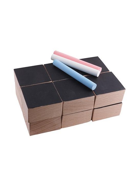 Ce lot de 12 cubes en bois dotées d'une face ardoise offrent de multiples possibilités de combinaison. Parfaits pour créer des cubes alphabet ou comme support de petits messages. Ils pourront également composer un grande construction. Papa et maman pourront d'ailleurs participer au jeu et proposer par exemple des anagrammes en mélangeant les lettres qu'ils auront préalablement écrites. Nombreuses sont les possibilités : anagramme, memory, additions, etc.