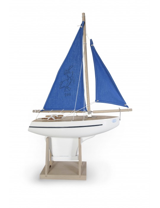 Voilier 701 - Coque blanche - Voile bleue- 30 cm