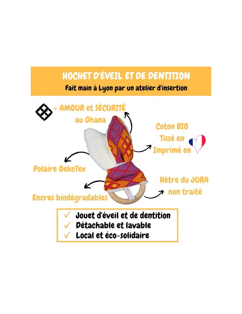 Le hochet d'éveil et de dentition permettra lui d'occuper bébé et d'apaiser ses douleurs quand il fera ses dents