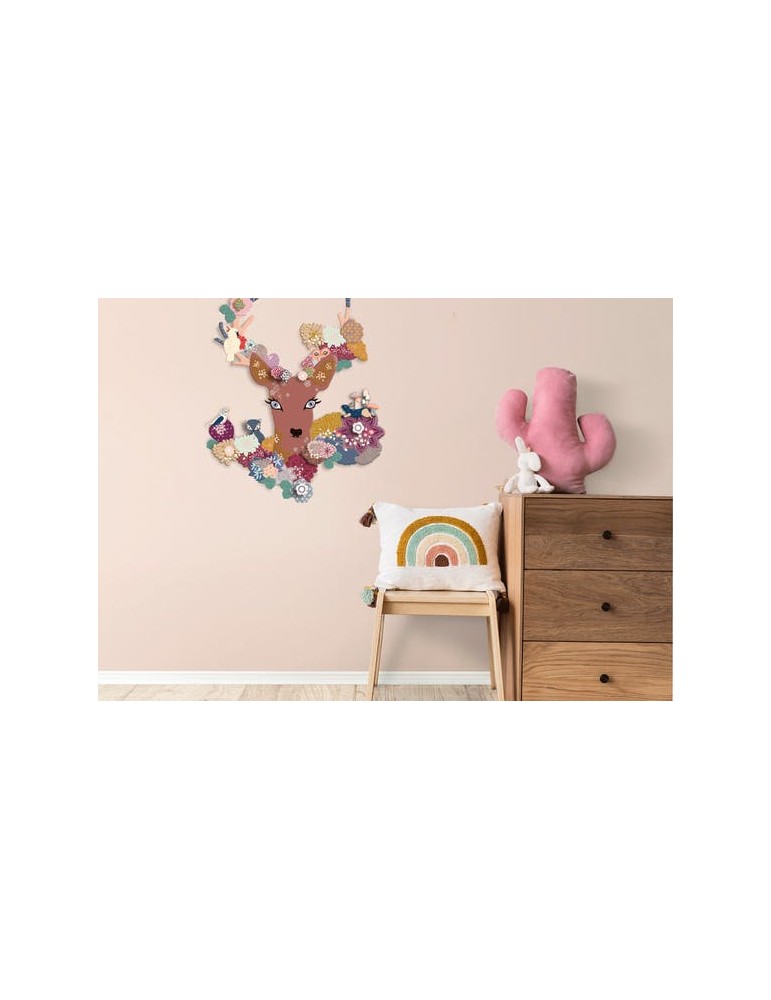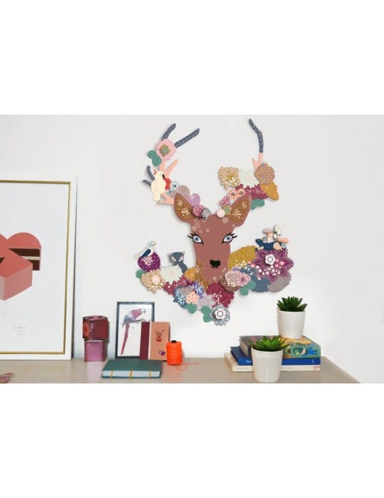 Superbe décoration à l’effet 3D pour composer sur ton mur une forêt extraordinaire ! Une jolie biche au doux regard rêveur à monter et une mise en scène onirique à inventer avec des branches, des fleurs et des feuillages, et tout un univers magique habité par de tendres et espiègles animaux.