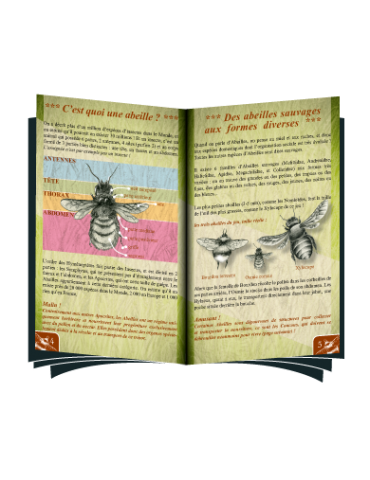Pédagogique ! Le jeu est accompagné d’un livret fourmillant d’informations sur les Abeilles sauvages, leur écologie, la pollinisation, les fleurs et le déclin des population. On trouve aussi des pistes sur les gestes possibles individuellement pour améliorer la situation !