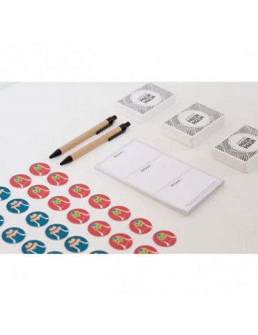 Contenu : 440 cartes "question", 32 jetons, 2 stylos, 1 bloc réponse, 1 règle du jeu.