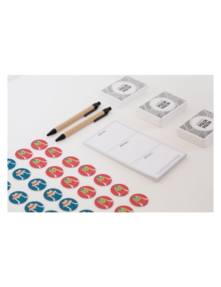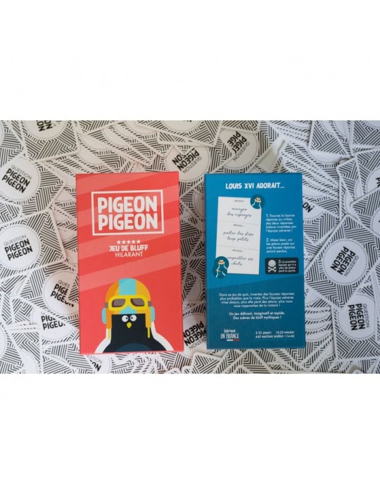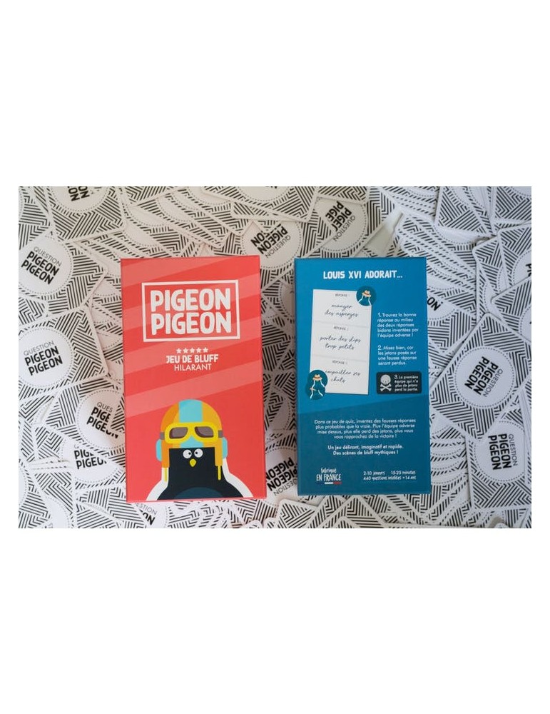 Pigeon Pigeon est un jeu co-imaginé avec 150 joueurs. C’est une idée cadeau facile, drôle, idéale pour la famille ou des amis qui aiment rire :) Pigeon Pigeon est un jeu de quiz aux questions insolites. Mais c'est surtout un jeu d’imagination et de bluff dans lequel :