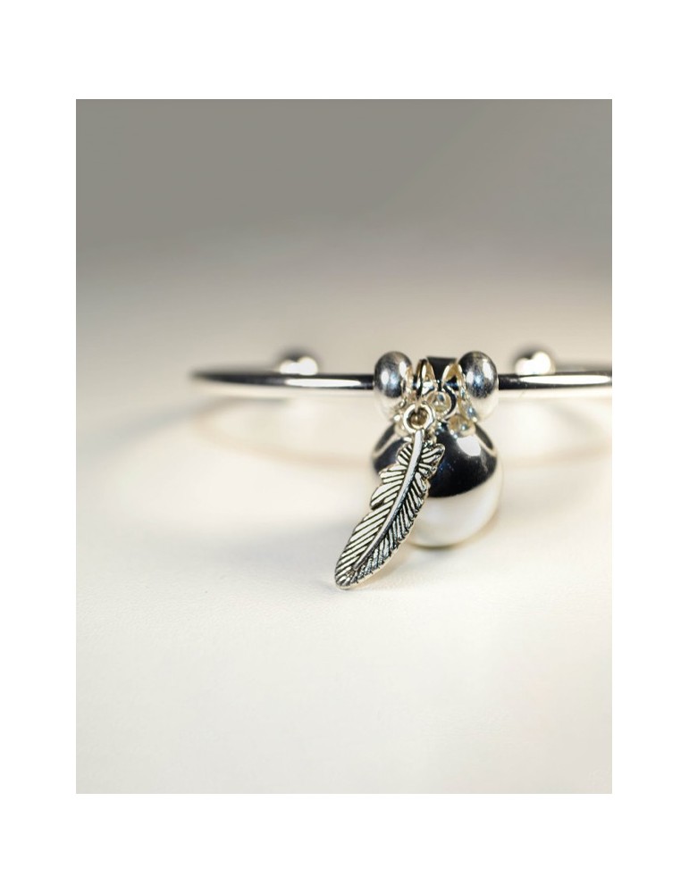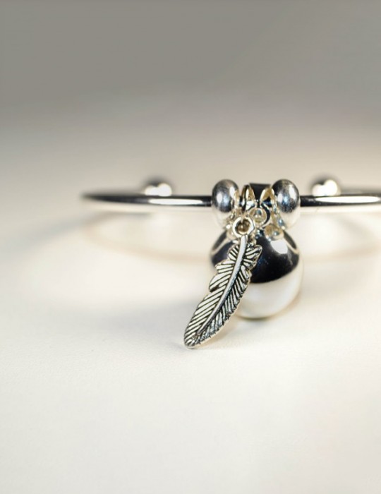 Le Bola en version bracelet avec un pendentif plume