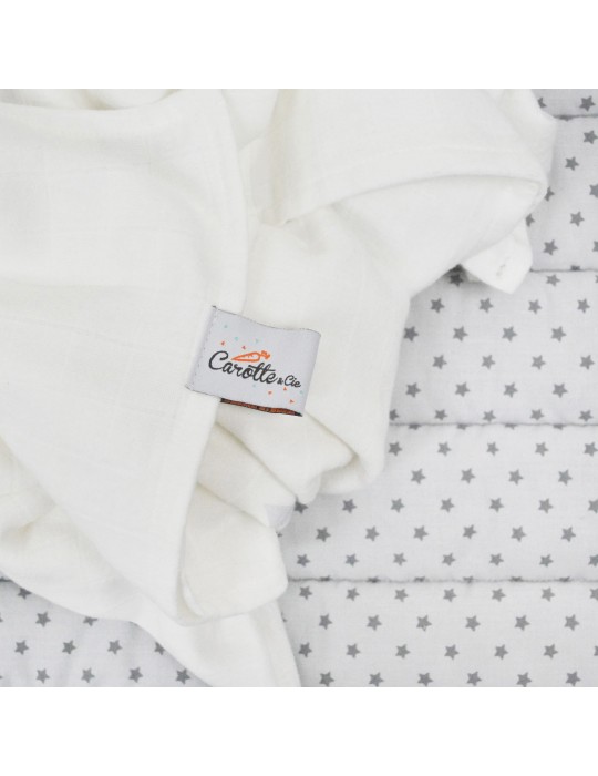 Lange, doudou chiffon pour bébé ou encore couverture d’appoint, il sera évoluer et trouver sa place à la maison mais également pour toutes les sorties. Le maxi lange est très doux (surtout après quelques lavages) et peut servir à emmailloter bébé dès la naissance, allaiter en toute discrétion, comme couverture d’été ou encore faire office de bavoir d’épaule.