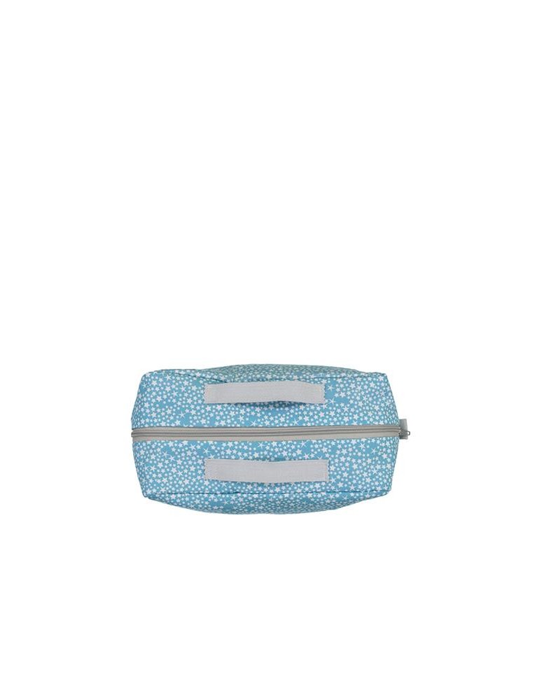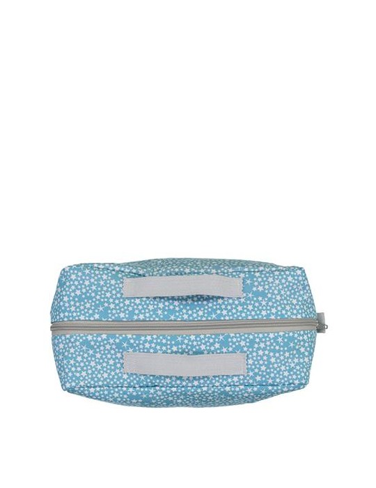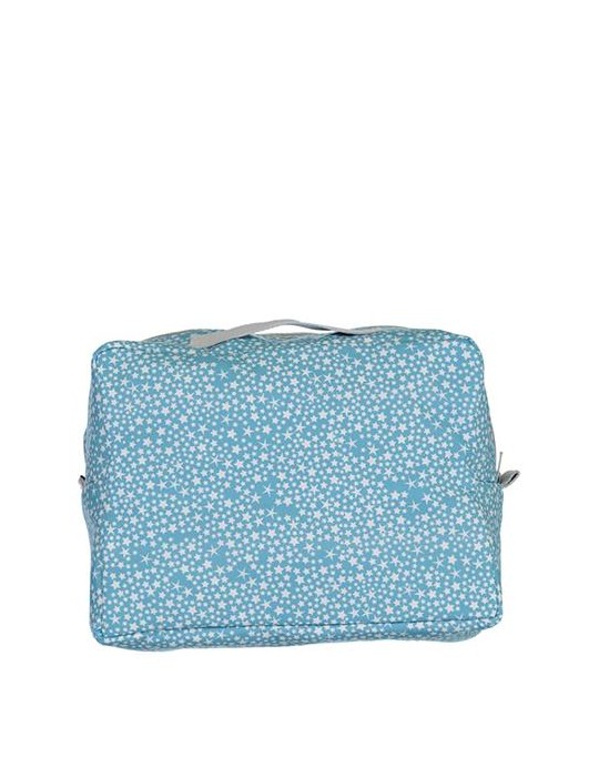 Cette valisette bleu est l'accessoire parfait pour ranger et emporter les produits de soin et d'hygiène du bébé lors de ses déplacements : médicaments, couches, lingettes... Doublée d'un tissu éponge, elle est souple et résistante au lavage.