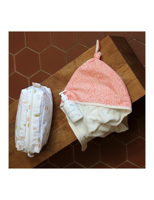 Emmitouflez votre bébé dans cette sortie de bain constellation corail après son bain. Munie d'une double gaze de coton, elle procure une douceur incomparable et possède une grande capacité d'absorption. Le petit nœud sur la tête de cette cape de bain la rend encore plus originale. Vous pouvez même vous en servir pour couvrir Loulou lorsqu'il fait chaud.