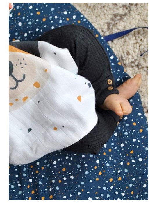 À placer dans la chambre de bébé ou dans le salon, ce tapis de sol agrémenté de jolis motifs granite rehausse la décoration. Sa texture douillette et moelleuse en fait une aire de jeux confortable pour votre bout de chou. Pratique et fonctionnel, ce tapis de jeu est aussi convertible en panier de rangement, parfait pour stocker les jouets de votre bambin. Il est lavable en machine à 40°.