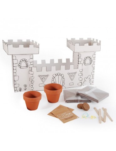 Kit pour créer un monde imaginaire fait de végétaux, chevaliers et princesses! De quoi à laisser libre court à l'imagination de votre bambin en herbe! Construire, décorer un château mais pas seulement : une catapulte à graines est même incluse en plus des 3 variétés de plantes dans les douves!