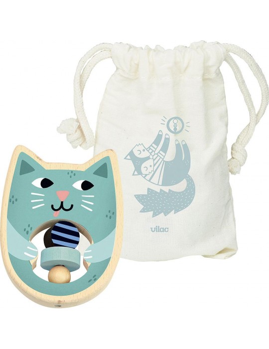 Ce magnifique hochet en forme de chat comporte en son centre des petites pièces à faire bouger. Idéal pour accompagner bébé dans son éveil. Dans son petit sac en toile, ce hochet est le cadeau de naissance parfait.