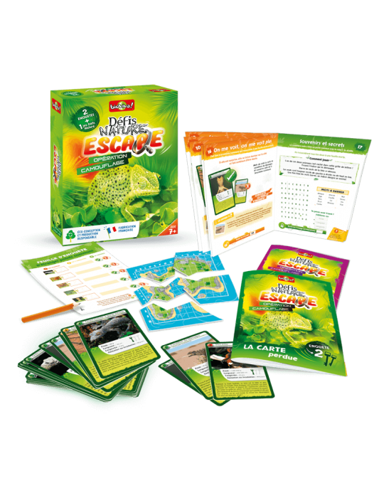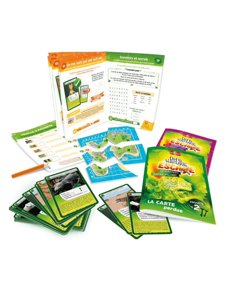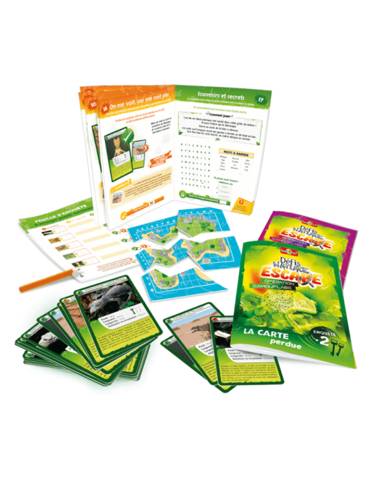 Deux enquêtes à résoudre grâce aux cartes Défis Nature incluses. Pour y arriver, tu devras étudier les cartes dans leurs moindres détails pour y trouver des indices, des similitudes, des infos étonnantes et t’en servir pour résoudre les énigmes !
