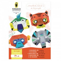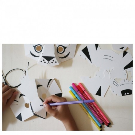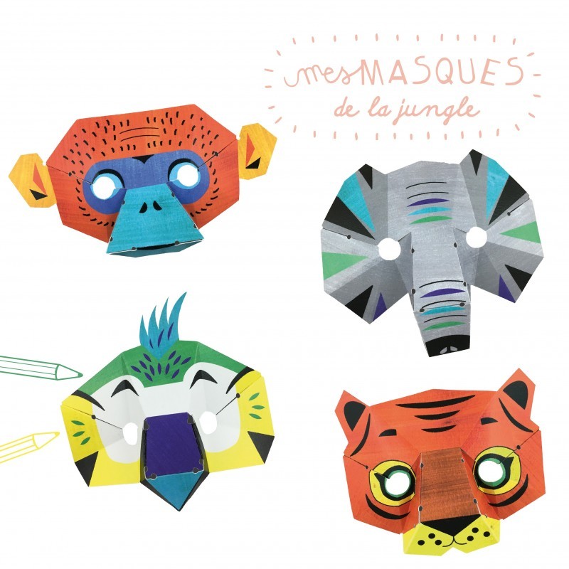 Chaque masque prend forme en assemblant le papier grâce à des élastiques (système breveté Elastiblock®). Ils sont ensuite prêts à être colorés selon son imagination ! Une activité manuelle 3D ou chacun peut choisir son totem, tigre, éléphant, singe ou perroquet. À chacun son animal de la jungle ! Idéal pour offrir en cadeau, pour se déguiser ou aussi pour décorer une chambre.
