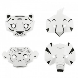 Une super activité manuelle constituée de 4 masques en papier ( singe, perroquet, tigre et éléphant ) à fabriquer en 3d et à colorier.