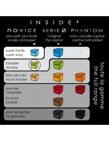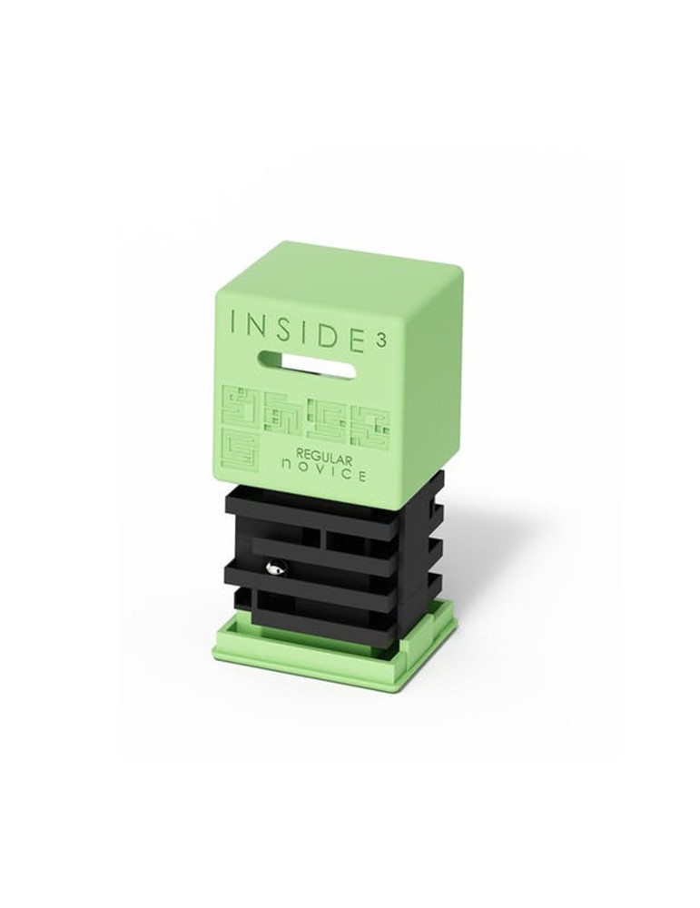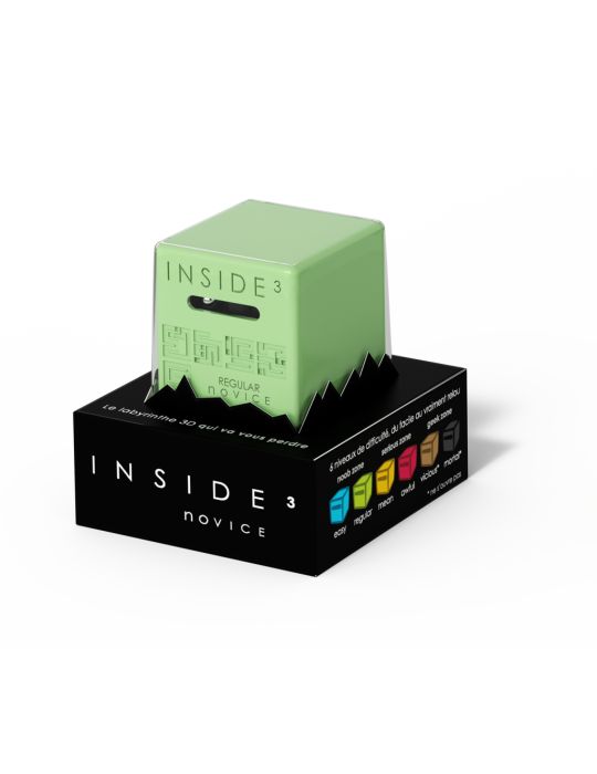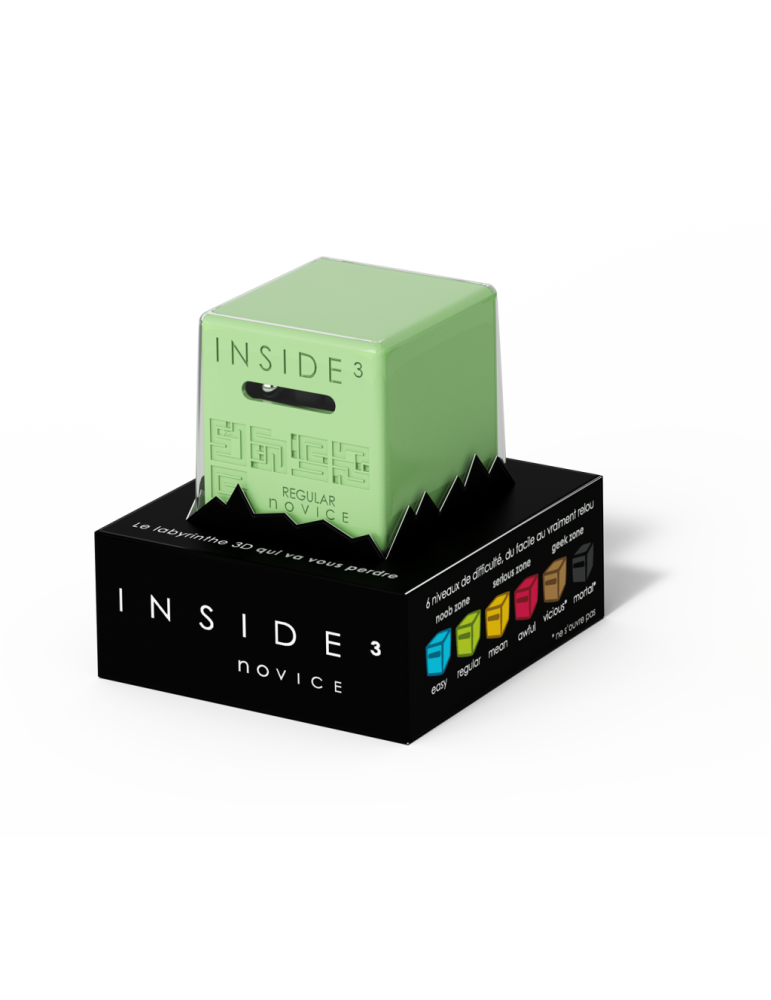 Inside3 c'est un labyrinthe caché à l'intérieur d'un cube. On joue à l'aveugle en s'aidant du plan gravé en surface.