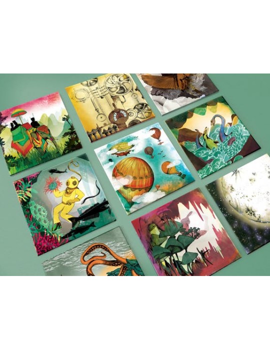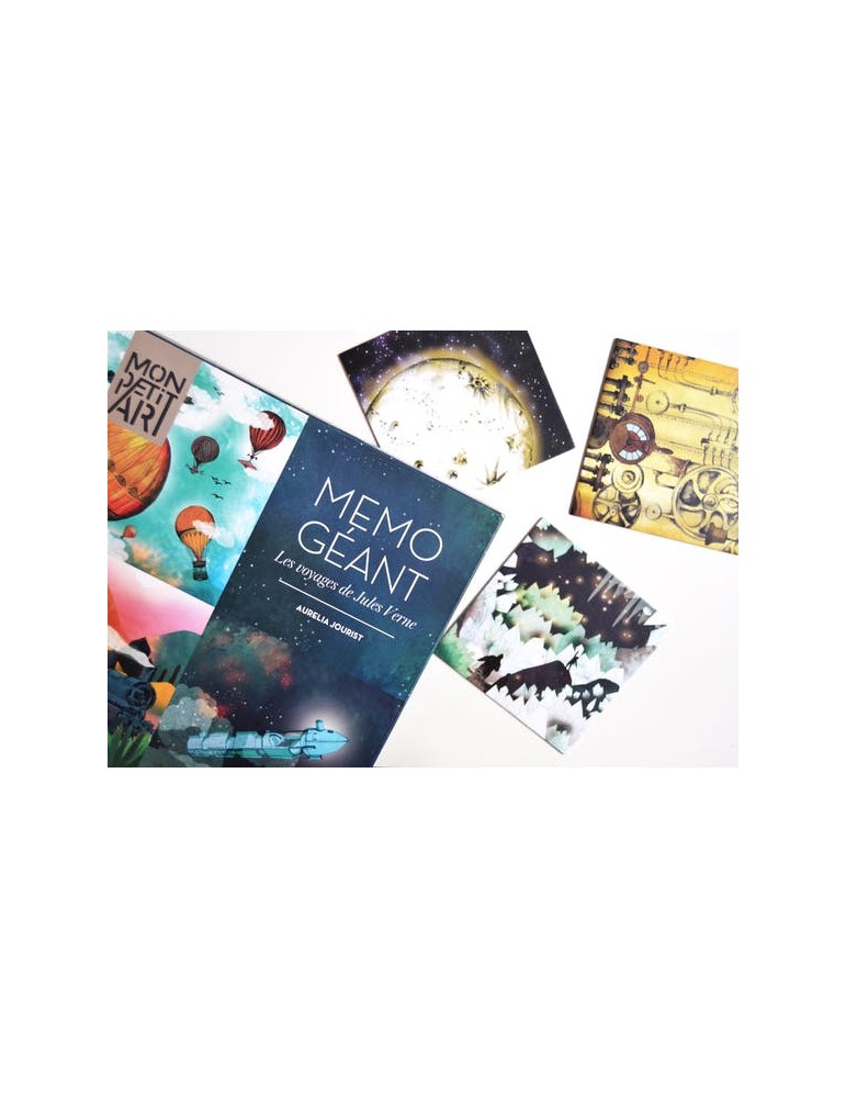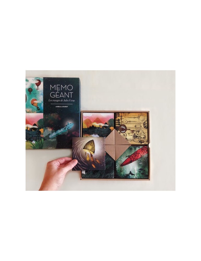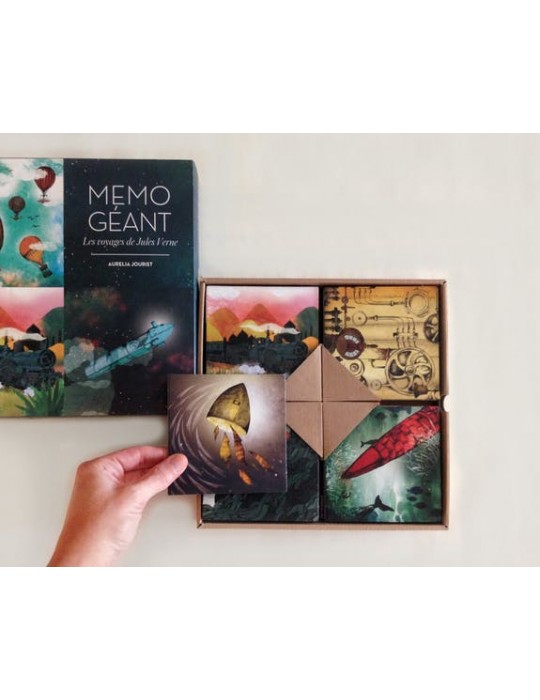 Grâce à ses cartes grand format ce jeu de mémoire invite à jouer d’une manière différente dans l’espace... Une belle proposition de jeu adaptée aux plus petits. Montez à bord d’une machine volante ou d’un sous-marin et partez pour un voyage inoubliable aux cotés de Jules Verne avec ce magnifique mémo géant ! Une approche originale et ludique des aventures extraordinaires du grand écrivain visionnaire. Dans le ciel, sous la mer, sur la terre, partir sur la lune ou suivre le Capitaine Nemo à bord du Nautilius... quelle aventure!