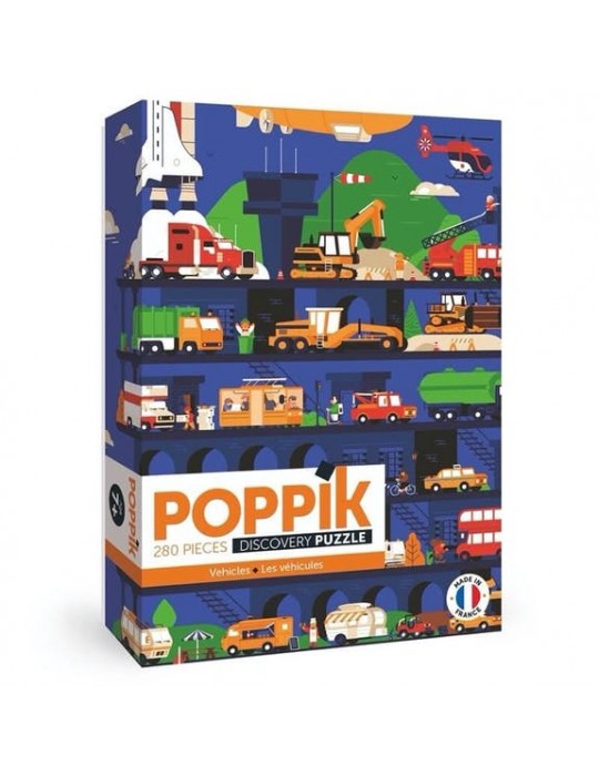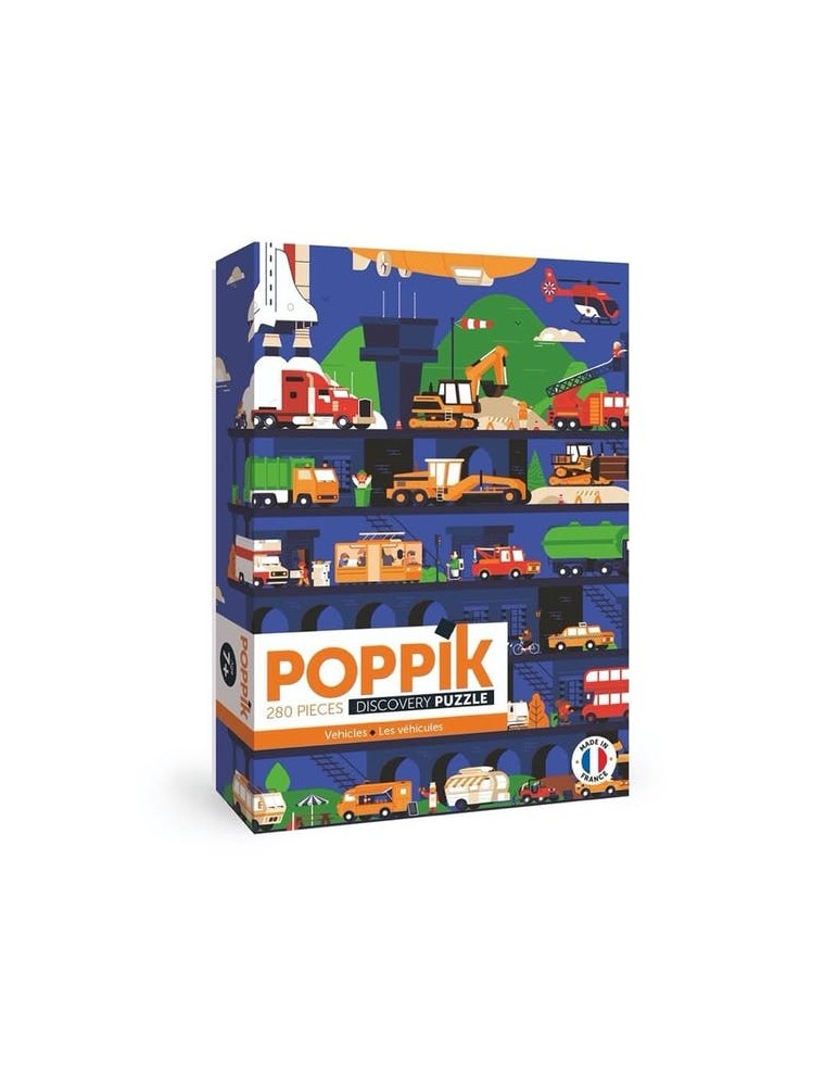Un puzzle 285 pièces (+poster) fabriqué en France sur le thème des véhicules en tous genres..