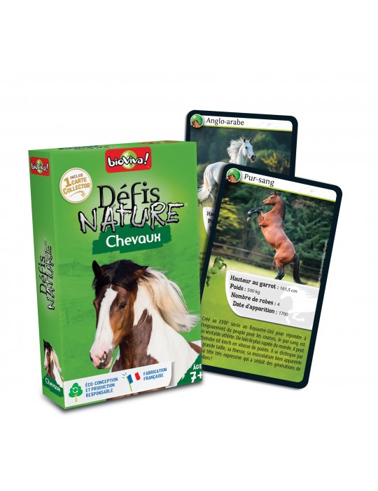 Défis Nature vous emmène à la rencontre des chevaux les plus majestueux. Découvrez les espèces les plus rares, puis pariez sur les points forts de vos équidés pour collecter toutes les cartes du jeu et remporter la partie.